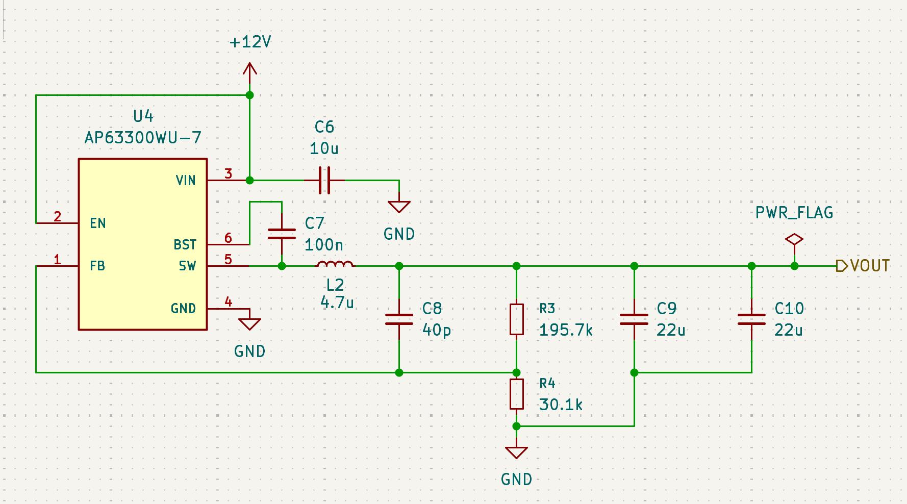 Buck converters regulate the fluctuating +12 V battery input into stable lower-voltage rails for the PCB.